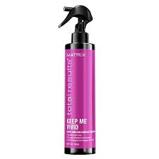 This laminating spray seals in hair colour in the salon.